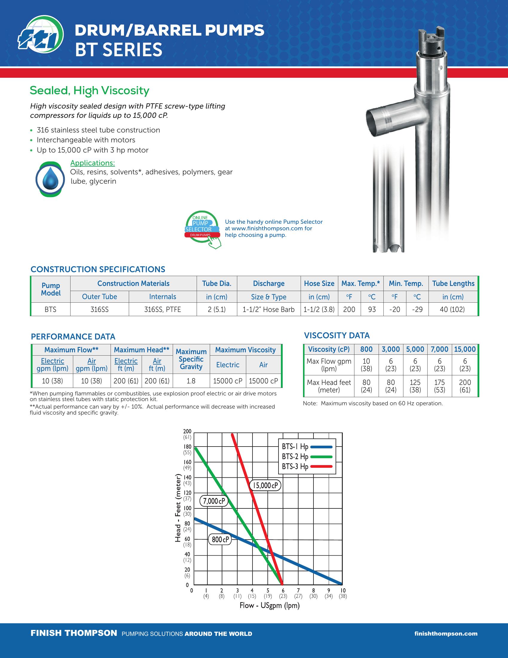 Note: Maximum viscosity based on 60 Hz operation.